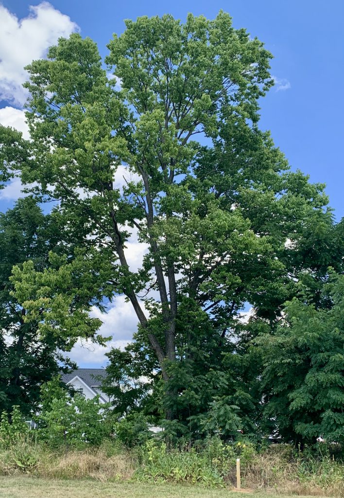 Station 9 – Some invasive species in this area were removed by the HOA including Ailanthus (also known as Tree of Heaven). Invasive species like the Ailanthus (pictured below) were brought to Virginia either by accident or they were brought here intentionally to take care of another problem. However, they got out of control and spread. Ailanthus is one of the fastest growing trees in North America, is resistant to drought, and is tolerant of many types of soil. Ailanthus can dominate an area due to vigorous re-sprouting, root-suckering, and secretion of a chemical from its root system to the surrounding soil that is toxic to some other plants.